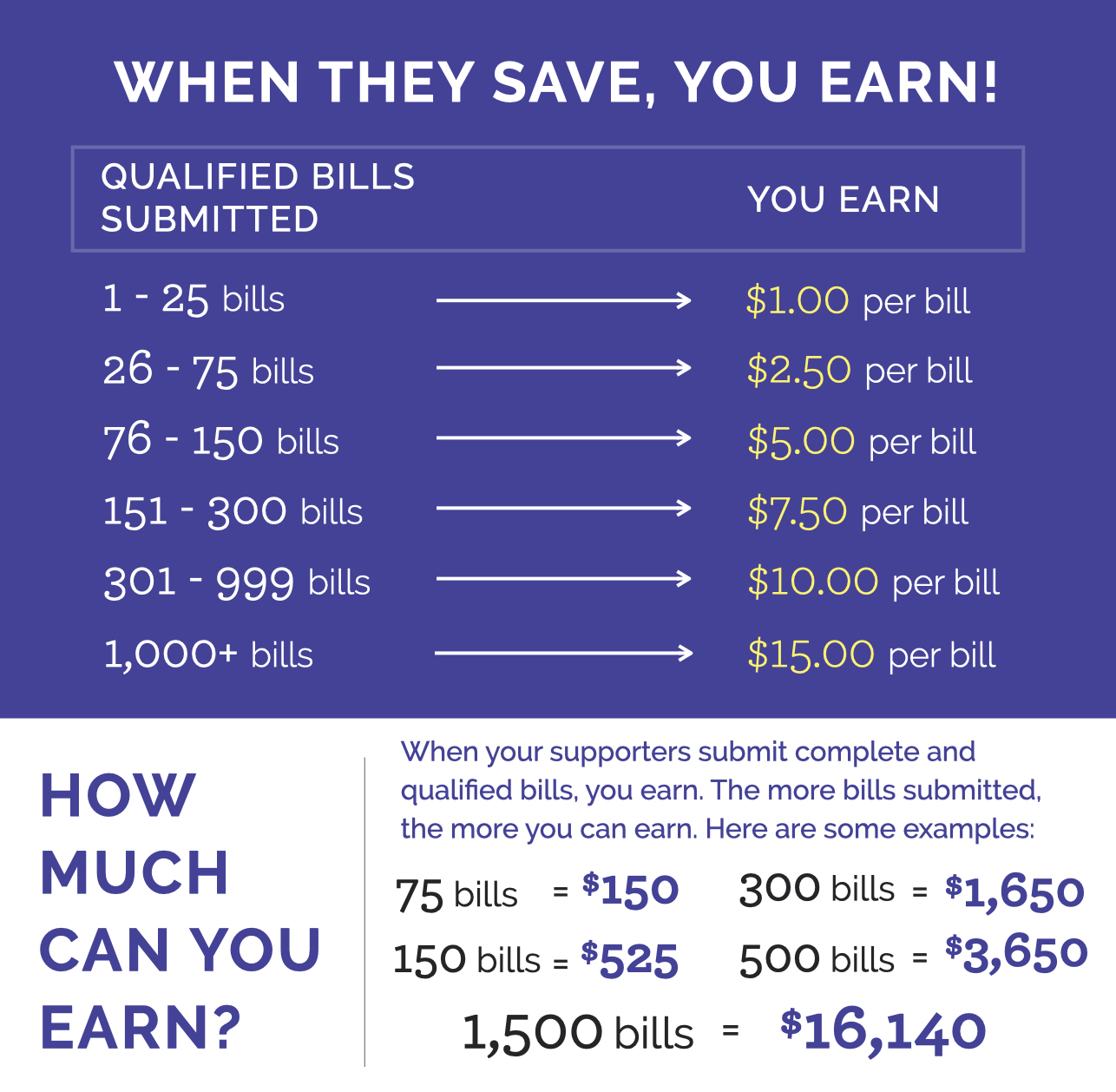 Earn more toward your fundraising goals when your supporters upload their bills!